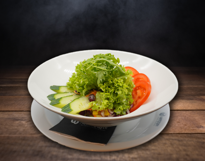 gefüllt mit Eisbergsalat, Gurken, Tomaten, Mozzarella, Basilikum und Tomatensauce